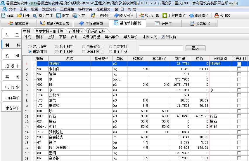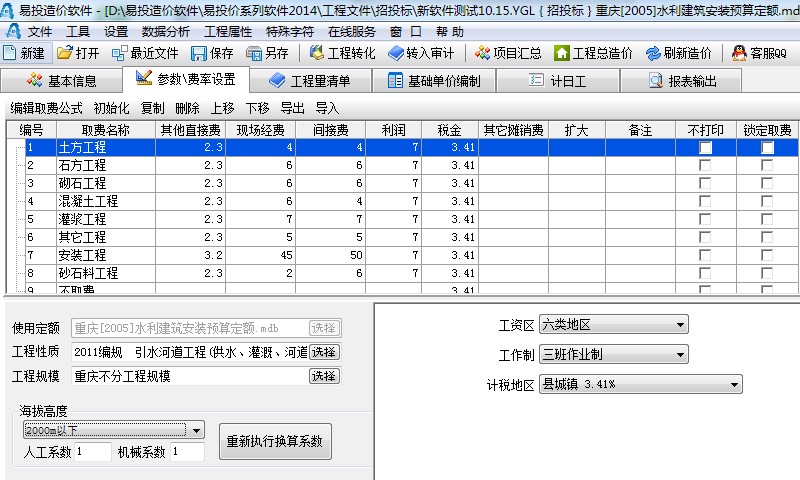 軟件適用與重慶市各類新建、擴(kuò)建、加固改造等水利水電工程項(xiàng)目設(shè)計(jì)概(估)算的編制。包括樞紐工程(水庫(kù)、水電站、獨(dú)立建筑物工程)和其他水利工程(供引水工程、灌溉排澇工程、河湖整治工程、堤防工程)。